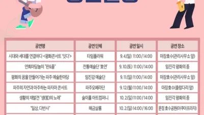 2022-08-31 02:46:01파주 대표 관광명소에서‘파주평화 예술한마당’개최 문화의 날 주간 무료공연