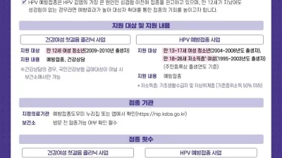 2022-08-10 01:38:30파주시, HPV 예방접종 지원 확대 실시 - 만 12~17세 여성 청소년, 만 18~26세 저소득층 여성 접종