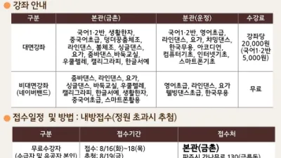 파주시, 어르신 대상 평생학습 프로그램 수강생 모집 파주시(시장 김경일)는 오는 16일부터 9월 1일까지 지역 어르신들을 대상으로 하는 평생학습 과정 수강생을 모집한다고 밝혔다. 이번 평생학습 과정은 어르신들의 안전하고 슬기로운 여가생활을 위해 평생교육, ...
