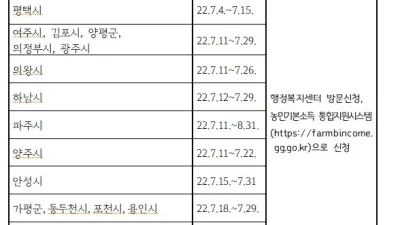 2022-07-04 02:06:09농민기본소득 신청 놓쳤다면 지금 신청하세요…포천시 등 17개 시군 대상