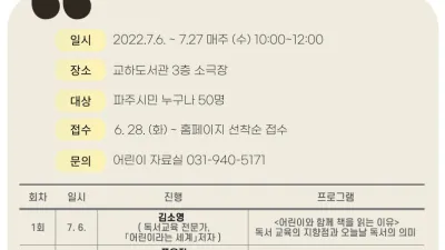 2022-07-04 01:21:172022 교하도서관 북스타트 ‘그림책으로 크는 어린이’부모교육 운영