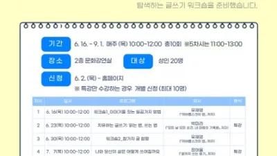 2022-06-22 06:38:12파주시 교하도서관, 길 위의 인문학‘글쓰기 워크숍’운영