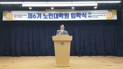 파주시, 2022년 노인대학원 입학식 개최 파주시는 24일 노인복지관 1층 뭉게구름홀에서 (사)대한노인회파주시지회 부설 노인대학원(대학장 정행직) 2022년도 제6기 입학식을 개최했다고 밝혔다.   이날 입학식에는 김윤재 대한노인회파주시지회장, 정행직 노인대학...