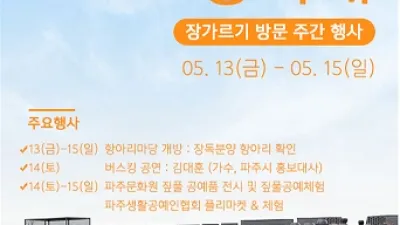 파주장단콩웰빙마루 장가르기 방문주간 행사 운영 - 버스킹행사 / 공예품 전시·체험 / 플리마켓 등 다채로운 컨텐츠 제공 - 파주시는 오는 13일부터 15일까지 ㈜파주장단콩웰빙마루에서 “장가르기 방문주간 행사”를 한다고 밝혔다. &nbs...