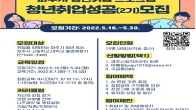 2022-05-11 00:52:16파주시,‘22년 2기 청년 취업성공 프로그램 참여자 모집