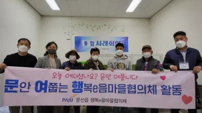 문산읍 행복e음마을협의체 특화사업 문여행 시작 파주시 문산읍(읍장 이재면)은 제4기 문산읍 행복e음마을협의체(위원장 심승희)가 ‘어서와! 문산은 처음이지 문안 여쭙는 행복e음마을협의체(이하, 문여행)’사업을 시작한다고 밝혔다.   이 사업...
