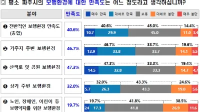 파주시,‘보행실태 및 인식 조사’실시 - 실증적 데이터에 기반한 시민체감형 보행친화도시 구현 추진 올해 3월 보행친화도시를 선포한 파주시가, 지역별 보행실태를 파악하고 보행정책 방향에 대한 시민들의 의견을 듣기 위해 ‘보행실태 및 인식 ...
