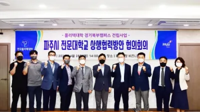한국폴리텍대학 경기북부캠퍼스 건립추진 협의 진행 - 파주시⦁폴리텍대학⦁지역 대학과 상생협력방안 모색 파주시(시장 최종환)는 28일 한국폴리텍대학 경기북부캠퍼스 건립추진에 따라 한국폴리텍대학, 관내 대학교 간 상생 협력방안 모색을 위...