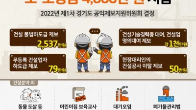 2022-04-18 00:49:26경기도, 건설 안전 위협 공익신고자에 보·포상금 4,666만 원 지급