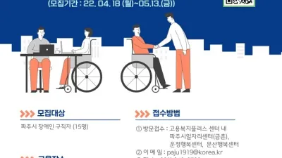 2022-04-18 01:47:35파주시,‘장애인 취업성공 특강’참여자 모집 - 5월 13일까지, 교육인원 15명 모집