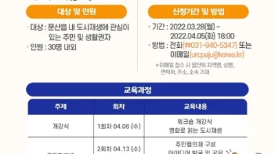 2022-03-28 02:32:23파주시 문산읍·법원읍 도시재생 예비사업 추진 위한 주민역량강화 프로그램 수강생 모집