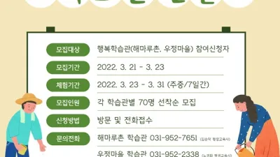 파주시, 2022년 마을공동체 주민제안 사업 선정 -마을공동체 활동 23개 모임, 공간조성 2개소 선정 파주시(시장 최종환)는 3월 23일 마을공동체 위원회를 개최하고 ’2022년 마을공동체 활동 및 공간조성 공모사업&l...