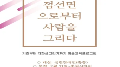 파주시, 중증장애인 문화예술프로그램 신청자 모집 파주시(시장 최종환)는 2월 21일부터 모집 시까지 장애인의 삶에 대한 긍정적 주체성 회복을 돕기 위한 문화예술프로그램 ‘점·선·면으로부터 사람을 ...