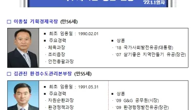 파주시, 2022년 상반기 정기인사 단행 (청년정책담당관 신설 및 조직개편 등에 따른 인사) 파주시는 명예퇴직과 공로연수에 따른 승진인사 및 조직개편으로 인한 결원보충을 위해 2022년 상반기 정기인사를 1월 1일자로 ...