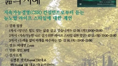 파주시 한울도서관은 9일부터 16일까지 3회에 걸쳐 비대면으로 시선+ 테마전시의 연계 강좌를 개최한다. 강의는 <밀도 있는 삶을 위한 인문학>의 저자이자 국내 1호 지속가능경영(CSR) 컨설턴트인 유명훈 작가가 진행한다. ...