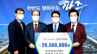 파주임진각평화곤돌라, 파주인재양성을 위해 행복장학금 기탁 파주시 출자기관인 ㈜파주디엠지곤돌라와 모 회사인 (주)동명기술공단이 11일, 장학금 2,000만원을 행복장학회로 기탁했다. 특수설립법인인 ㈜파주디엠지곤돌라는 20...