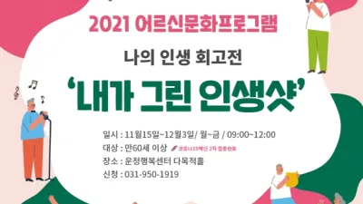 파주도시관광공사, 어르신 문화프로그램 나의 인생 회고전 ‘내가 그린 인생샷‘ 진행 파주도시관광공사는 문화체육관광부가 주최하고 한국문화원연합회가 주관하는 2021년 어르신문화프로그램 지원사업 <나의 인생 회...