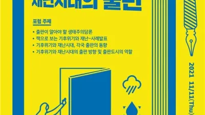 파주 출판도시에서 개최하는 2021 파주출판도시 국제출판교류 포럼 기후위기와 재난시대의 출판’ 개최, 11월 11일(목) ~ 11월 12일(금) 대규모 전염병, 지구 기온 상승 등 생태와 기후위기가 국내외적으로 급박한 쟁점으로 대두되는...