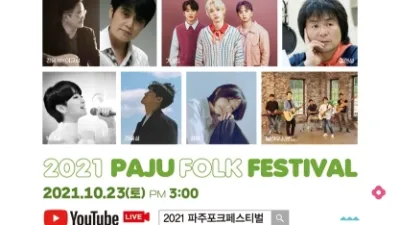 파주시,‘2021 파주포크페스티벌’온라인 개최 파주시가 주최하고 파주도시관광공사에서 주관하는 ‘2021 파주포크페스티벌’이 10월 23일 오후 3시, 온라인으로 개최된다. &n...
