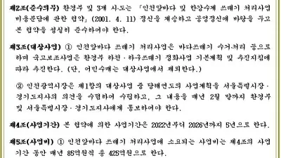경기도, 환경부·서울시·인천시와 손잡고 한강 쓰레기 줄인다 - 제5차 인천앞바다 및 한강 서울 구간 쓰레기 처리 비용분담 협약 체결 ○ 경기도 포함 4개 기관, 한강 하구와 인천 앞바다 쓰레기 수거·처리에 힘 모으기로 ...