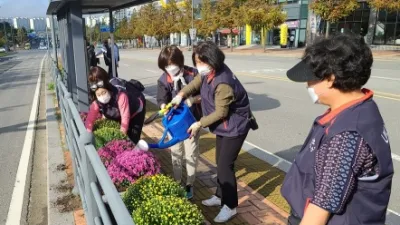2021-09-30 12:17:00파주시 운정2동, 바르게살기위원회와 버스정류장에 국화 향기 담아 - 산내마을 상가, 버스정류장 구간 국화모종 식재