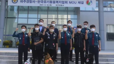 2021-10-05 06:48:21슈슈, 제트, 이제 한팀, 잘 부탁해!! -파주경찰서, 한국유기동물복지협회와 국내 최초 수색견 지원 MOU 체결