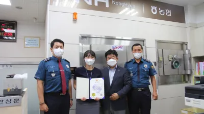 2021-08-26 00:35:17파주경찰서, 보이스피싱 범죄 예방한 북파주 농협 직원 찾아가 감사장 전달, 올해만 9차례 전달