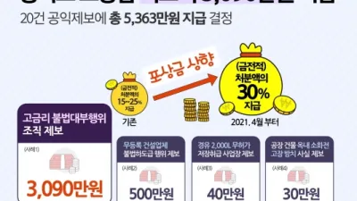 2021-08-10 01:02:37경기도, 불법 사금융 공익제보자에 포상금 최고액 3,090만원 지급 - 도 공익제보지원위원회, 20건의 공익제보에 포상금 5,363만원 지급 결정