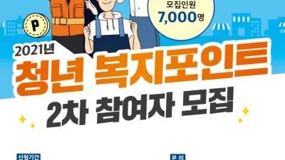 경기도, 연간 120만원 ‘청년 복지포인트’ 2차 참여자 7천명 모집 ○ 모집 기간 : 8월 2일(월) 오전 9시부터 8월 17일(화) 오후 6시까지 - 120만원 상당 복지포인트 경기청년몰에서 사용 - 경기도 소재 중소·...