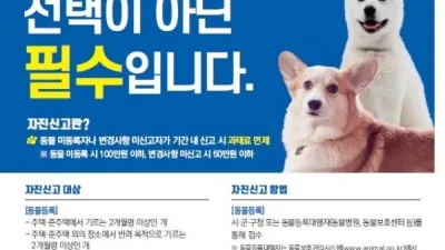 소중한 반려동물 위한 책임‘동물등록 자진신고’ - 7월 19일부터 9월 30일까지 자진신고 과태료 면제 파주시가 반려동물을 등록하지 않은 시민들의 자발적 참여를 유도하기 위해 7월 19일부터 9월 30일까지 동물등록 자진신...