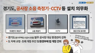 공사장에서 들리는 소음, 날아오는 먼지 때문에 힘드셨죠? 경기도, 1천㎡ 이상 관급공사장 대상 미세먼지·소음 측정기, CCTV 설치 의무화 ○ 경기도, 도(경기주택도시공사 포함)에서 발주하는 관급공사장 환경관리 강화방안 발표 - 1천㎡ 규모 이...
