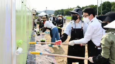 파주시 채색사업 제3차 문산 동문천 시작 DMZ 야생화·동물을 주제로 채색 작업 파주시가 2일 문산읍 선유6리 동문천에서 채색자원봉사자와 마을주민 등 40여명의 관계자와 함께 마을채색 작업을 진행했다. &n...