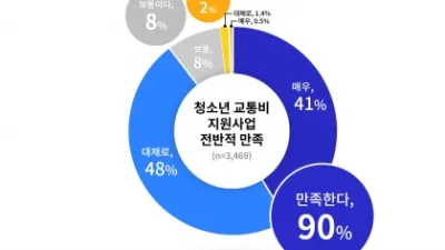 경기도 청소년 교통비 지원사업, 이용자 90% 만족 ○ 2020년 최초 시행한 ‘경기도 청소년 교통비 지원 사업’ - 전반적 만족 90%, 불만족 2%뿐 - 재이용 의향(97%), 주위 추천 의향(96%) 높아 - 10명 중 8명 사업...