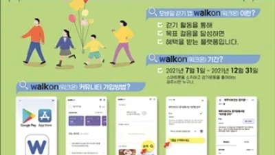 모바일 워크온 걷기운동사업 ‘파주를 걷자’참여자 모집 파주시보건소가 워크온 걷기운동 사업에 함께할 참여자를 모집한다. 워크온 걷기운동 사업은 걷기를 좋아하는 파주시민을 대상으로 신체활동량 증진 및 ...