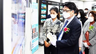 파주시 2호 문산역 부엉이책장 개장식 개최 파주시가 4일 경의중앙선 문산역 무인 도서대출기기 ‘부엉이책장’의 개장식을 개최했다. 이날 개장식에는 최종환 파주시장, 문산역장, 도·시의원, 책 읽는 파...