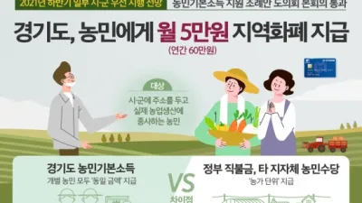 2021-04-30 14:02:21농민기본소득 조례안 경기도의회 통과. 올해 하반기부터 시행 전망