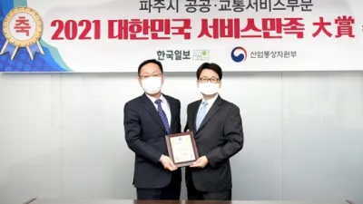 파주시, 2021 대한민국 서비스만족 대상 수상 - 전국최초 마을버스 준공영제 코로나위기 속에 빛났다 파주시가 ‘2021 대한민국 서비스만족 대상’을 수상하며 공공·교통서비스분야에서 뛰어난 지자체로...