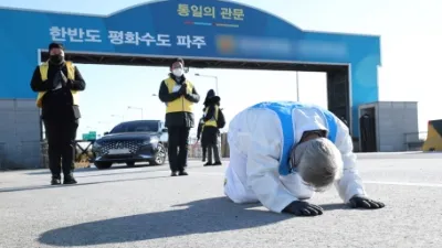 개성공단 재개 선언 촉구 삼보일배 나선 평화부지사 “현장집무실 운영으로 국민적 열기 실감, 이제 실천을 위한 범국민운동 제안”