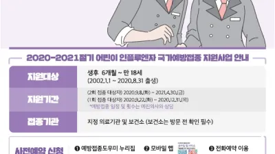 2020-09-08 06:25:58경기도, 인플루엔자 무료예방접종 대상 만 62~64세, 만 14~18세로 확대. 올 연말까지