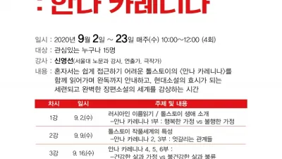 2020-09-01 09:20:03파주시 한울도서관, 독서의 달 기획특강 - <고전 읽어드립니다: 안나 카레니나> 온라인강의
