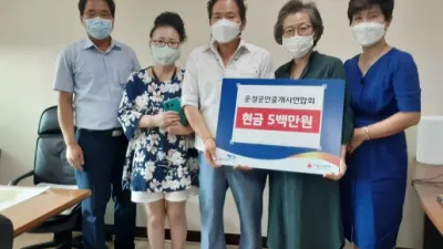 파주시, 코로나19 확산에 따른 기부 동참 행렬 이어져 운정공인중개사협회의 기부 파주시에 코로나19 확산으로 어려움을 겪고 있는 취약계층을 위한 따뜻한 기부동참 행렬이 계속 이어지고 있다. 운정공인중개사연합회가 성금 5...