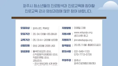 2020-04-28 10:12:10파주진로체험지원센터, ‘진로교육 강사 양성과정’교육생 모집