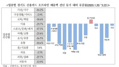 2020-04-22 13:28:49코로나19 발생 이후 경기도 내 신용카드 매출액, 전년 동기 대비 1조 8,821억 원 감소