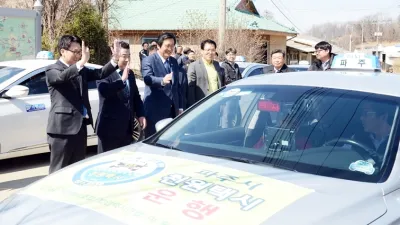 파주 천원택시 운행 1주년‘시민의 일상을 바꾸다’ 주민 복지+택시 소득 UP 2019년 12월 기준 2만7천400여명 주민 이용 택시업계에 2억5천만 원 예산 지출 대중교통이 불편한 지역 주민에게 맞춤...