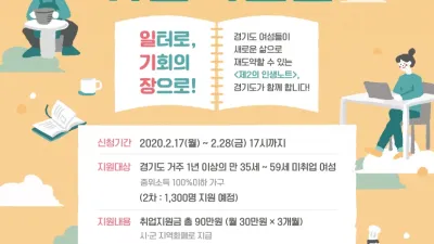 2020-02-16 09:33:44“경기도 거주 미취업 여성에게 구직활동 지원금을 드립니다”