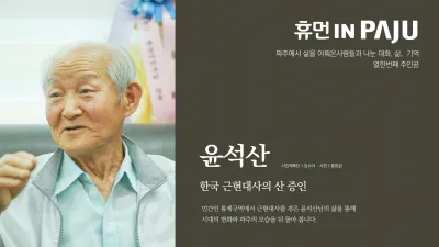 파주중앙도서관, 휴먼 IN PAJU 전시 및 강연 개최 - 한국 근현대사의 산 증인 윤석산 선생님과의 만남 파주중앙도서관과 구술채록 동아리 시민채록단은 급속한 도시화 과정에서 사라져가는 파주의 옛것을 기억하고 보존하기 위해 마을과 시민들의 역사...