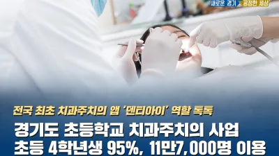 ‘경기도 초등학생 치과주치의’ 사업 초등생 11만7,000명 이용 ○ 5~11월 도내 초등학교 4학년생 95%, 11만7,000명 이용 ○ 전국 최초 치과주치의 앱 ‘덴티아이’, 내 손안에 구강정보 역할 톡톡 ○ ...