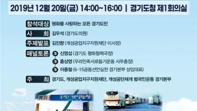 ‘남북관계개선 창의적해법 모색 위한 평화대토론회’ 개최 ○ 12.20 오후 2시 경기도청 제1회의실서 개최 … 이재명 도지사 등 300여명 참석 - ‘가자! 개성관광, 열자! 개성공단!’ 주제로 평화통...