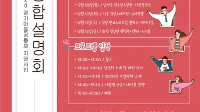 2019-12-02 05:28:54경기도, 2020년 마을공동체 지원사업 통합설명회 개최