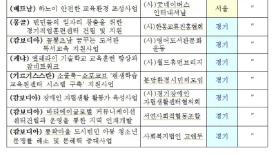 경기도, 민간 제안 아이디어 반영한 ‘도민참여형 국제개발협력사업’ 9건 추진 ○ 경기도, 지난달 공모 통해 민간차원의 참신한 아이디어 반영된 사업 9건 선정 건립 등 통해 키르키스스탄, 베트남, 캄보디아, 케냐, 몽골 등 5개국 협력 억원 들여 베...